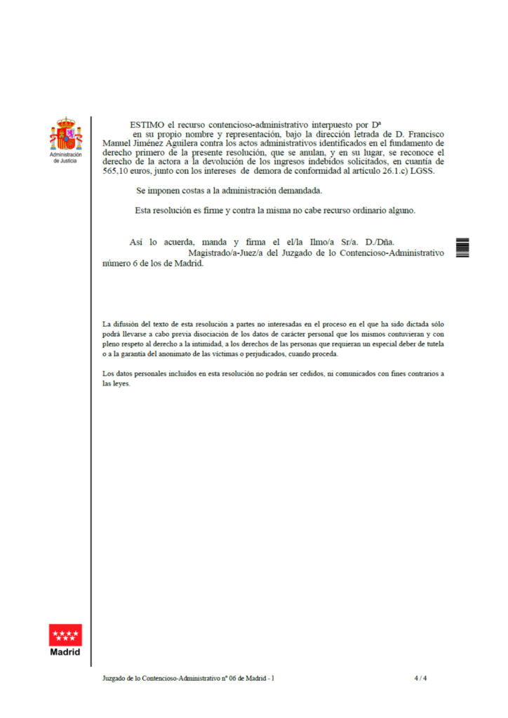 La Audiencia Provincial de Madrid examinó el caso y falló a nuestro favor: